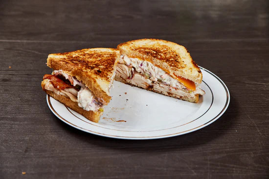 Ovengold Turkey, Bacon, Cheddar, Coleslaw, Pickle, BBQ Sauce on Sourdough